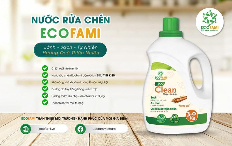 Nước Rửa Chén Sinh Học Ecofami Eco Clean (Hương Quế): Sạch Bóng, Khử Khuẩn, Dưỡng Da Tay