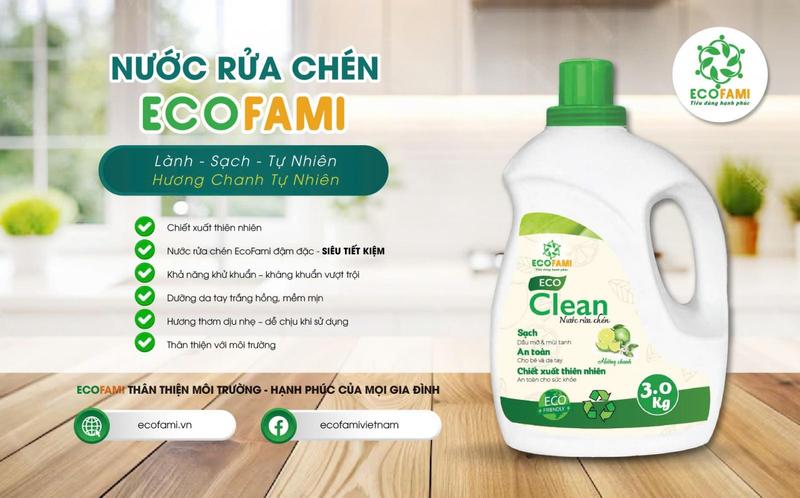 Nước Rửa Chén Sinh Học Ecofami Eco Clean (Hương Chanh): Sạch Bóng, Khử Khuẩn, Dưỡng Da Tay