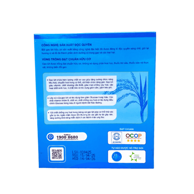 - Chất xơ từ gạo lứt 20-25g/100g + magie cao: Tạo cảm giác no, hỗ trợ kiểm soát cân nặng, kích thích tuyến tụy sản xuất insulin tự nhiên, rất phù hợp cho người cần ổn định đường huyết.