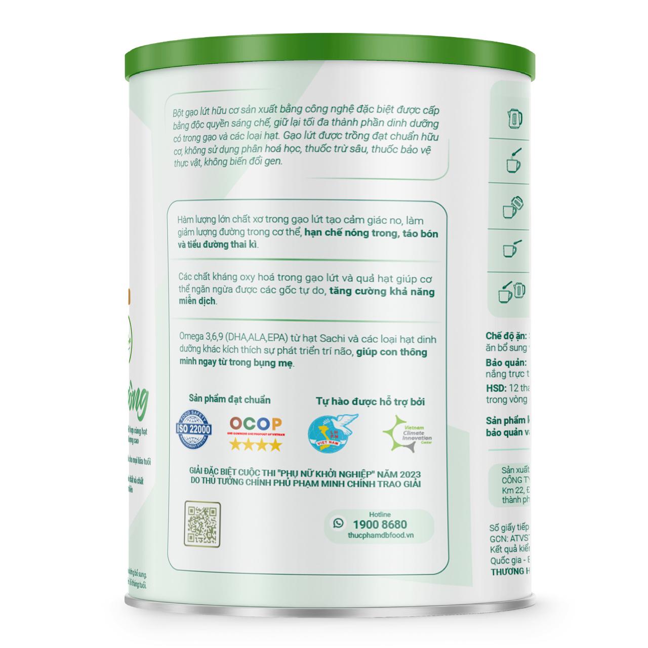 Bột gạo lứt hữu cơ LỨT ít đường được sản xuất tại Việt Nam bởi DBFood từ 100% gạo lứt sinh thái Điện Biên, canh tác và thu hoạch theo quy trình organic không phân hóa học, không thuốc trừ sâu, giữ nguyên lớp màng cám siêu dinh dưỡng (chiếm 65% dưỡng chất của hạt gạo), giúp bổ sung chất xơ, vitamin nhóm B, khoáng chất và chất chống oxy hóa tự nhiên, hỗ trợ phục hồi cơ thể, kiểm soát cân nặng, ổn định đường huyết tự nhiên, đặc biệt phù hợp cho mẹ bầu, mẹ sau sinh và mọi thành viên gia đình.