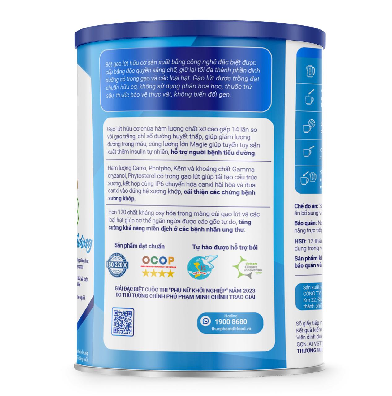 Chủng vị: Không đường. Vị ngọt tự nhiên từ gạo lứt. Lon 400g tương đương 15 ly 300ml.