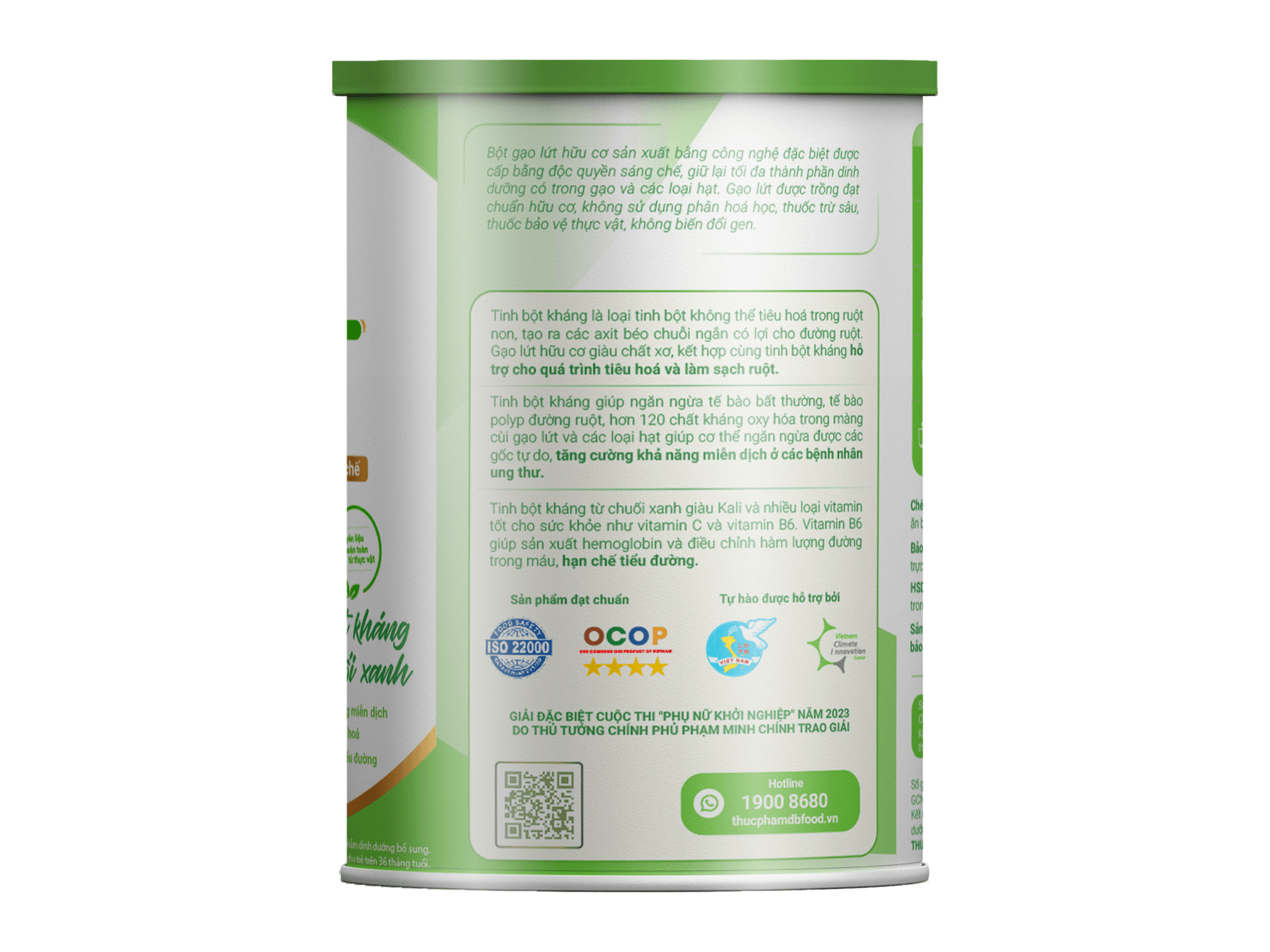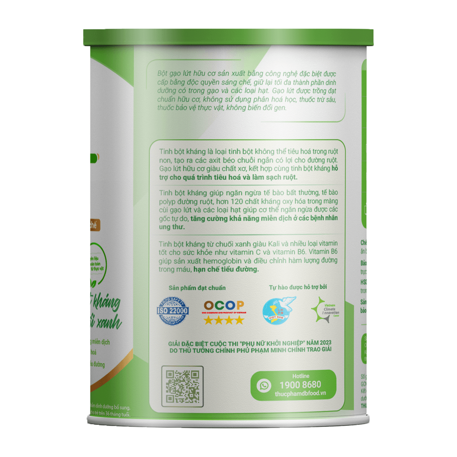 - Tinh bột kháng chuối xanh (22%)