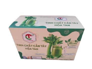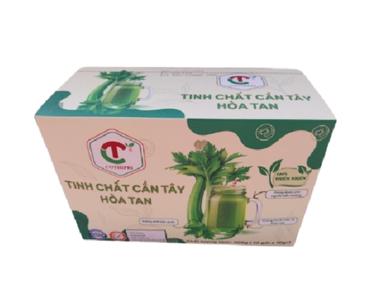 Tinh chất cần tây hòa tan được sản xuất bởi Doanh Nghiệp tư nhân Công Thiện Phát – Long An theo công nghệ sấy phun sương hiện đại, giữ trọn 70% nước ép cần tây tươi nguyên chất lượng cao từ vùng nguyên liệu sạch, giúp bổ sung chất xơ, vitamin và khoáng chất tự nhiên, hỗ trợ điều hòa huyết áp, bảo vệ tim mạch, chắc khỏe xương, thanh lọc cơ thể, giảm cân an toàn và làm đẹp da từ bên trong chỉ trong vài giây hòa tan.