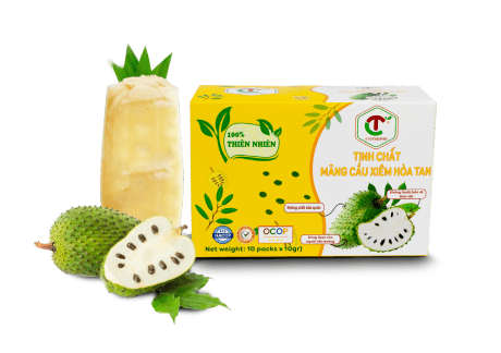 Tinh chất mãng cầu xiêm hòa tan được sản xuất bởi Doanh Nghiệp tư nhân Công Thiện Phát – Long An theo công nghệ sấy phun sương hiện đại, giữ trọn 70% nước ép mãng cầu tươi nguyên chất lượng cao từ vùng nguyên liệu sạch, giúp bổ sung vitamin C cực cao, chất xơ và khoáng chất tự nhiên, hỗ trợ chống oxy hóa mạnh mẽ, làm đẹp da sáng mịn, kích thích tiêu hóa, cải thiện thiếu máu, chắc khỏe xương răng và tăng cường sức đề kháng chỉ trong vài giây hòa tan.