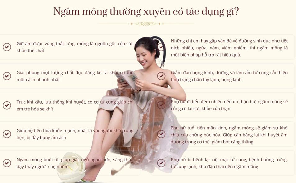 - Chậu ngâm nên đủ cao để nước ngập tới vùng rốn, tương đương với vùng cổ tử cung — giúp dưỡng ấm tử cung và thận.