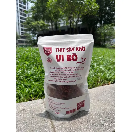 Thịt sấy khô vị bò là sản phẩm ăn vặt hấp dẫn được sản xuất trực tiếp bởi Công ty Cổ phần Thương mại TAF Việt Nam, đơn vị uy tín trong ngành thực phẩm sạch và chế biến hiện đại. Với công nghệ sấy tiên tiến và nguồn nguyên liệu được tuyển chọn kỹ lưỡng, sản phẩm mang đến hương vị bò thơm đậm, cay ngọt hài hòa, nhai một lần là mê ngay.
