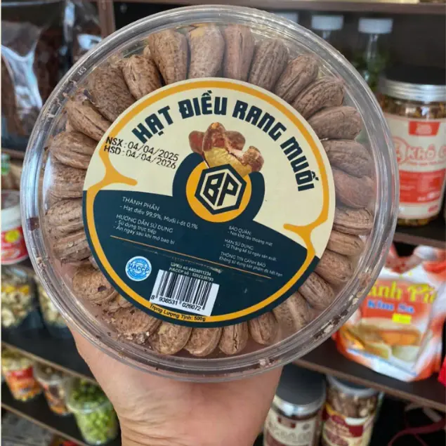 Hạt Điều A Cồ Bình Phước Loại 1 Hộp Nhựa Tròn 500g - Nhỏ Hạt, Thịt Vàng, Thơm Ngon Béo Ngậy