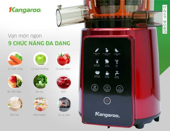 Bảo toàn 100% dưỡng chấtCông nghệ ép ly tâm trong máy thông thường có tốc độ ép cao làm phát sinh nhiệt, phá vỡ cấu trúc vitamin và dưỡng chất có trong hoa quả. Với công nghệ ép chậm trong máy ép Kangaroo làm giảm ma sát, không phát sinh nhiệt, bảo toàn tối đa dưỡng chất và vitamin.