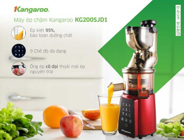 Hoạt động mạnh mẽ, ép khoẻ, ép chậmMáy có công suất mạnh 200W kết hợp cùng trục ép khỏe khoắn mang đến khả năng ép kiệt bã vượt trội. Chân đế cao su bám chắc bề mặt, dù máy ép mạnh không sợ bị xê dịch, hạn chế rung lắc.Chế độ tự làm sạch tiện dụngKhông cần tháo rời các bộ phận sau khi sử dụng, với máy ép chậm Kangaroo, người dùng chỉ cần đổ nước kèm dung dịch làm sạch và bật cho máy chạy, sản phẩm sẽ tự vệ sinh sạch sẽ. Các bộ phận của máy cũng được tháo lắp rất dễ dàng, tiện lợi cho việc vệ sinh.