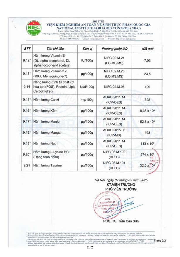 - Hỗn hợp vitamin & khoáng chất: A, D3, E, B1, B2, B3, B6, B9, B12, K1, K2, Canxi, Kẽm, Magie, Sắt…