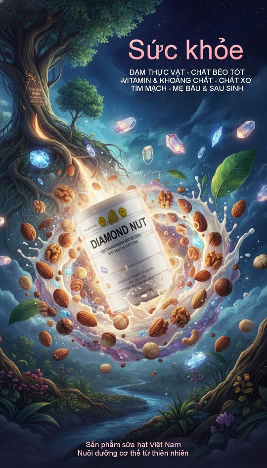Sữa hạt dinh dưỡng Diamond Nut là lựa chọn hoàn hảo dành cho những ai tìm kiếm nguồn dinh dưỡng tự nhiên, lành mạnh và an toàn cho sức khỏe. Sản phẩm được kết hợp từ hơn 20 loại hạt và ngũ cốc cao cấp, giàu đạm thực vật, chất béo tốt Omega-3,6, vitamin D-B12, canxi và chất xơ, giúp bổ sung năng lượng mỗi ngày và hỗ trợ sức khỏe toàn diện.