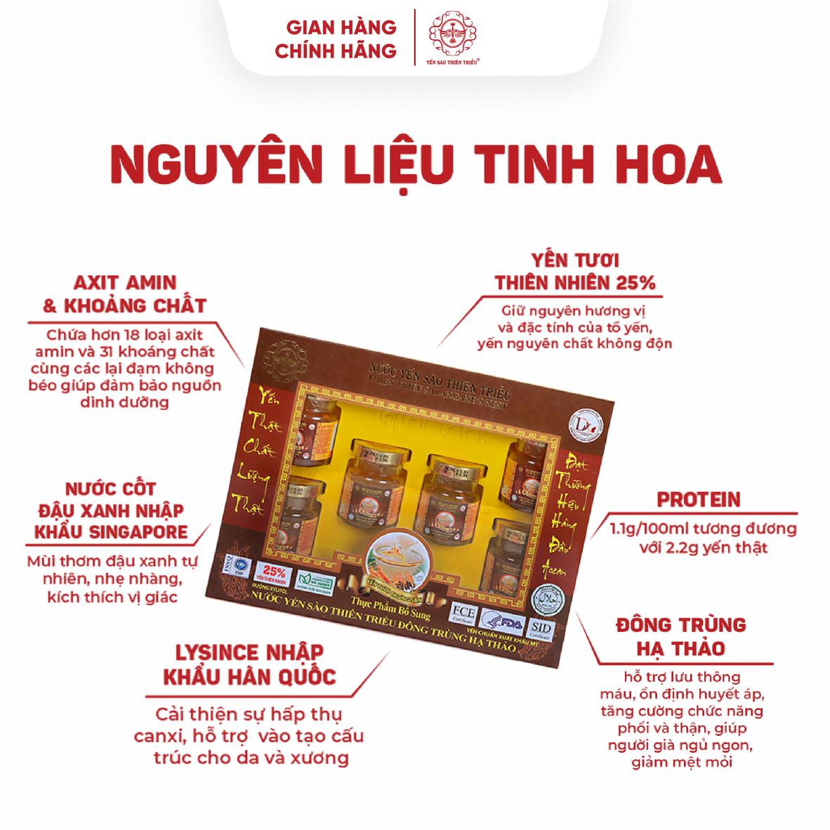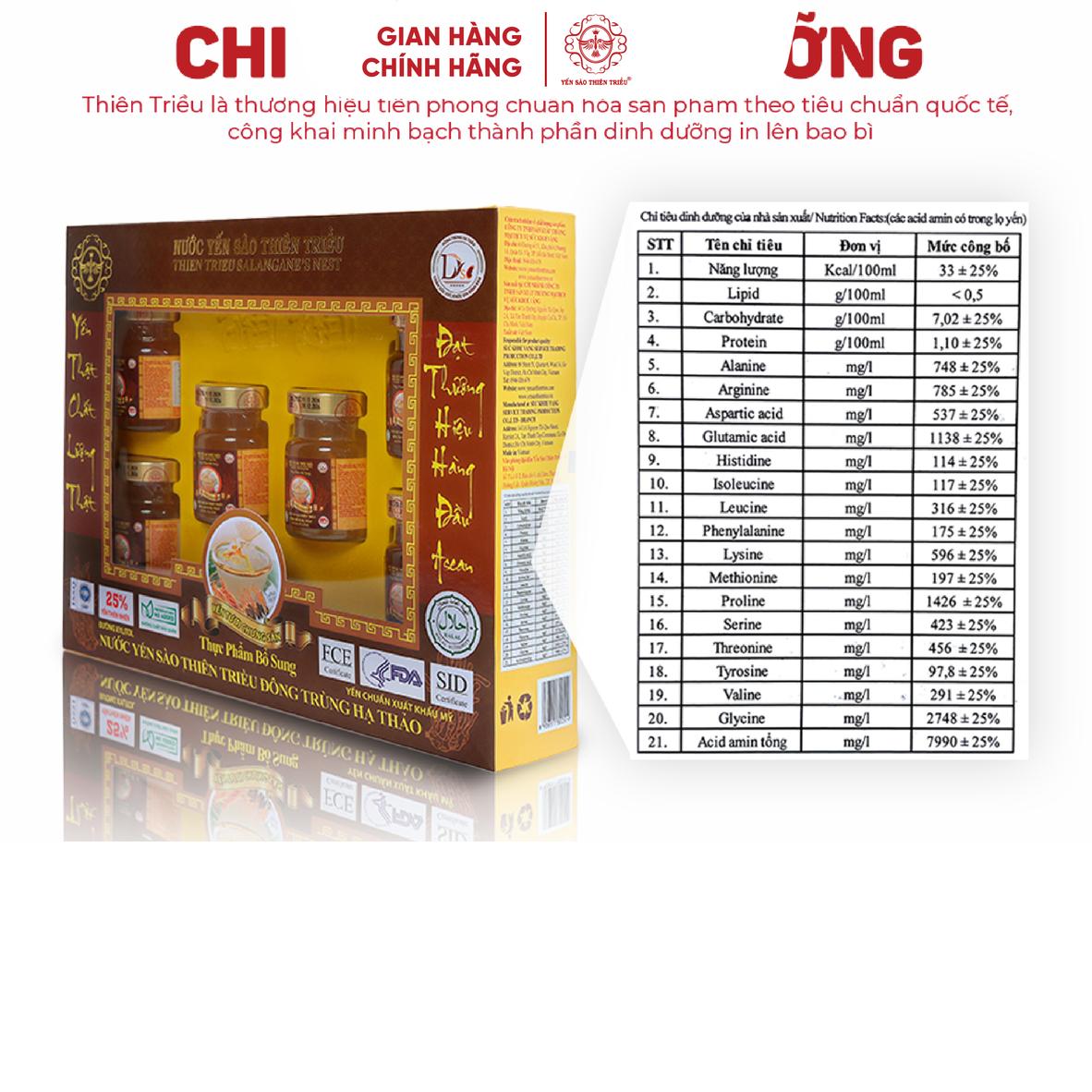Hộp 6 hũ 70ml Yến Sào Chưng Đông Trùng Hạ Thảo - 25% Yến Tươi - Yến Sào Thiên Triều