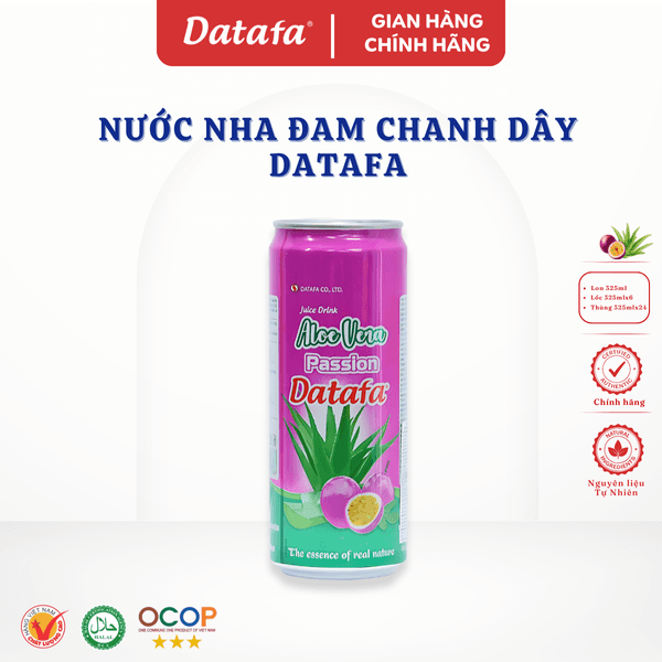 Nước Giải Khát Nha Đam Chanh Dây DATAFA 325ml - Lon Tiện Lợi, Giải Nhiệt Sảng Khoái (Lốc 6 lon, Thùng 24 Lon)