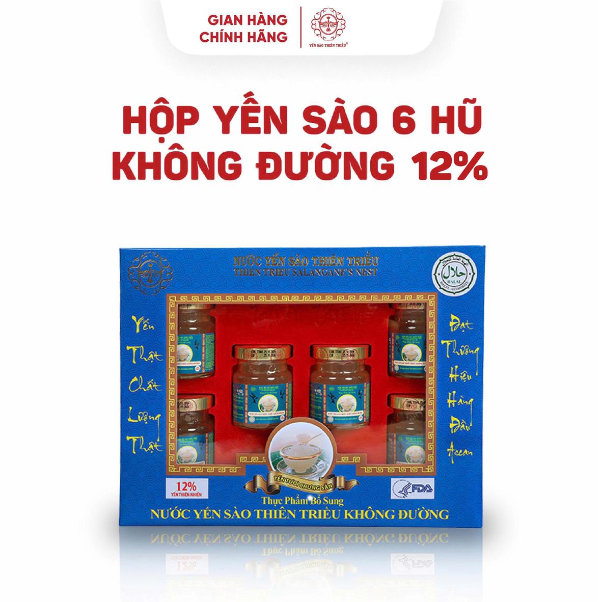 HỘP 6 HŨ YẾN SÀO CHƯNG KHÔNG ĐƯỜNG 12% YẾN – YẾN SÀO THIÊN TRIỀU