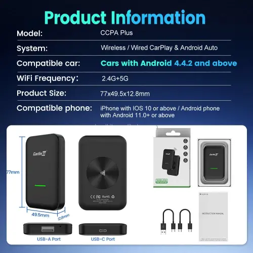 - Kết nối không dây 2-trong-1: Nâng cấp Apple CarPlay và Android Auto lên không dây chỉ với một thiết bị siêu nhỏ gọn.