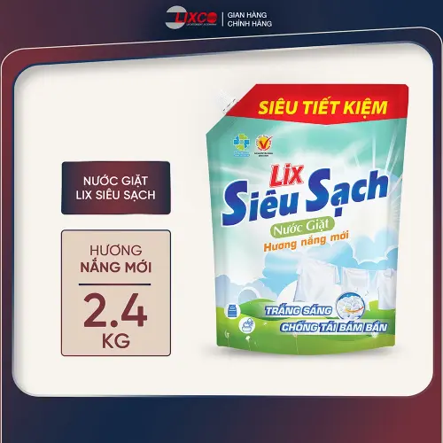 Nước Giặt Lix Siêu Sạch Hương Nắng Mới Túi 2.4Kg