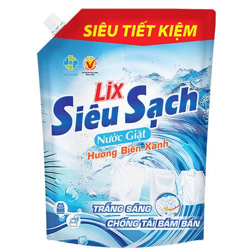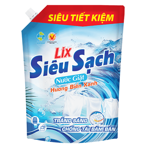 Giới thiệu chung: Nước giặt Lix Siêu Sạch Hương Biển Xanh với công thức chống tái bám bẩn giúp đánh bay vết bẩn và áo quần sạch trắng sáng. Siêu tiết kiệm ngân quỹ gia đình bạn. Sản phẩm thấm sâu vào từng thớ vải, tăng gấp đôi sức mạnh giặt tẩy so với bột giặt thông thường, đồng thời lưu giữ hương thơm dịu mát gấp đôi, mang lại quần áo sạch sẽ, tươi mới và tỏa hương biển xanh dễ chịu suốt cả ngày. Sản phẩm được sản xuất tại Việt Nam bởi Công ty Cổ phần Bột Giặt Lix, đảm bảo chất lượng chính hãng, thân thiện với môi trường và an toàn cho mọi loại vải.