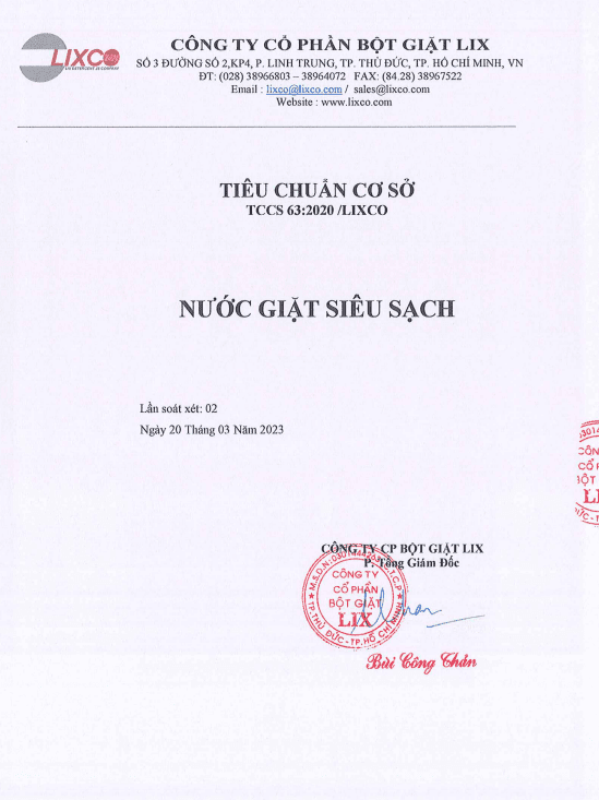 - Nơi sản xuất: Công ty Cổ phần Bột Giặt Lix Việt Nam