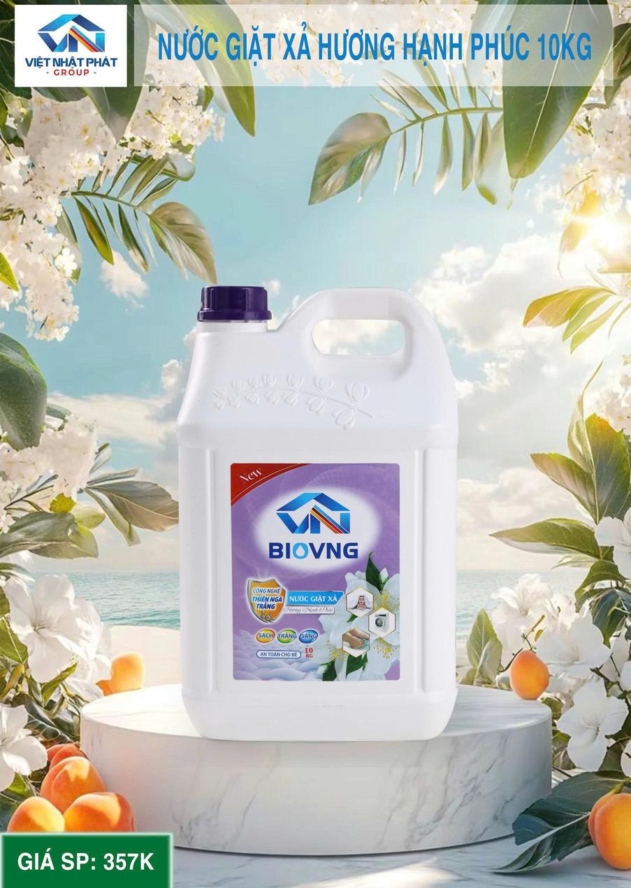NƯỚC GIẶT CAO CẤP LƯU HƯƠNG DÀI LÂU BIOVNG Can 10KG - Sạch sâu, Dịu nhẹ, Thơm bền hương cả ngày (Hương Hạnh Phúc | Hương Tình Yêu)