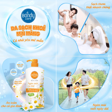Sữa tắm Bondy Care Ngăn Mùi Cơ Thể chứa các thành phần làm sạch lành tính, thấm sâu vào các lỗ chân lông, làm sạch sâu và loại bỏ vi khuẩn gây mùi hiệu quả nhanh chóng. Mang lại làn da sạch khỏe suốt ngày dài cùng cảm giác thơm mát thư thái. Thích hợp sử dụng cho cả gia đình. Với công thức dưỡng ẩm từ thiên nhiên, sản phẩm giúp da mềm mịn, ngăn mùi cơ thể mà không ảnh hưởng đến tuyến mồ hôi, đảm bảo chất lượng chính hãng và an toàn cho mọi loại da.