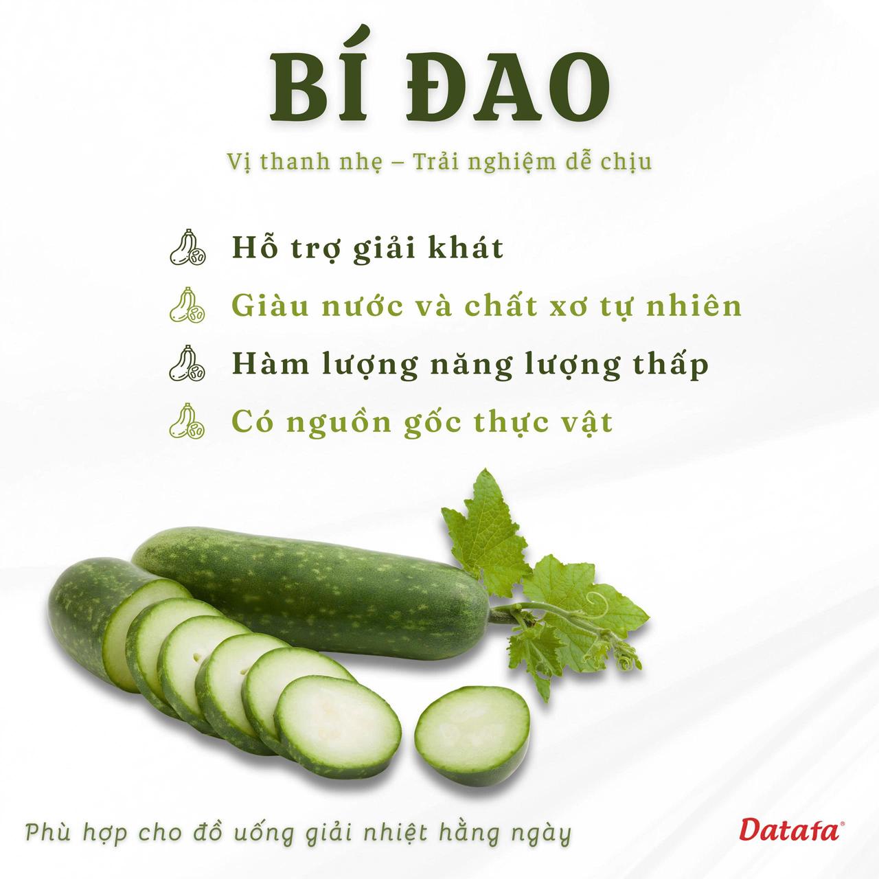 Bạn cần giải khát sau bữa ăn cay nóng hay ngày nắng oi bức? Trà Bí Đao Datafa với cốt bí đao cô đặc 100% tự nhiên là lựa chọn hoàn hảo. Không chỉ giúp thanh lọc cơ thể, sản phẩm còn hỗ trợ làm đẹp da và giữ dáng hiệu quả.