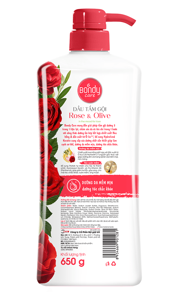Dầu Tắm Gội Bondy Care Rose & Olive Chai 650G