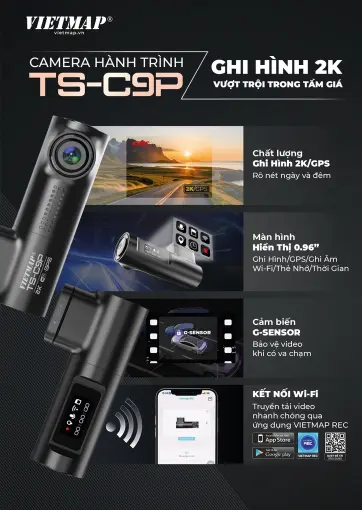 Camera Hành Trình Vietmap TS-C9P Độ Phân Giải 2K - Tích Hợp GPS, Wi-Fi, Pin Siêu Tụ Điện - Tặng Thẻ Nhớ & Vietmap Live Pro 12 Tháng