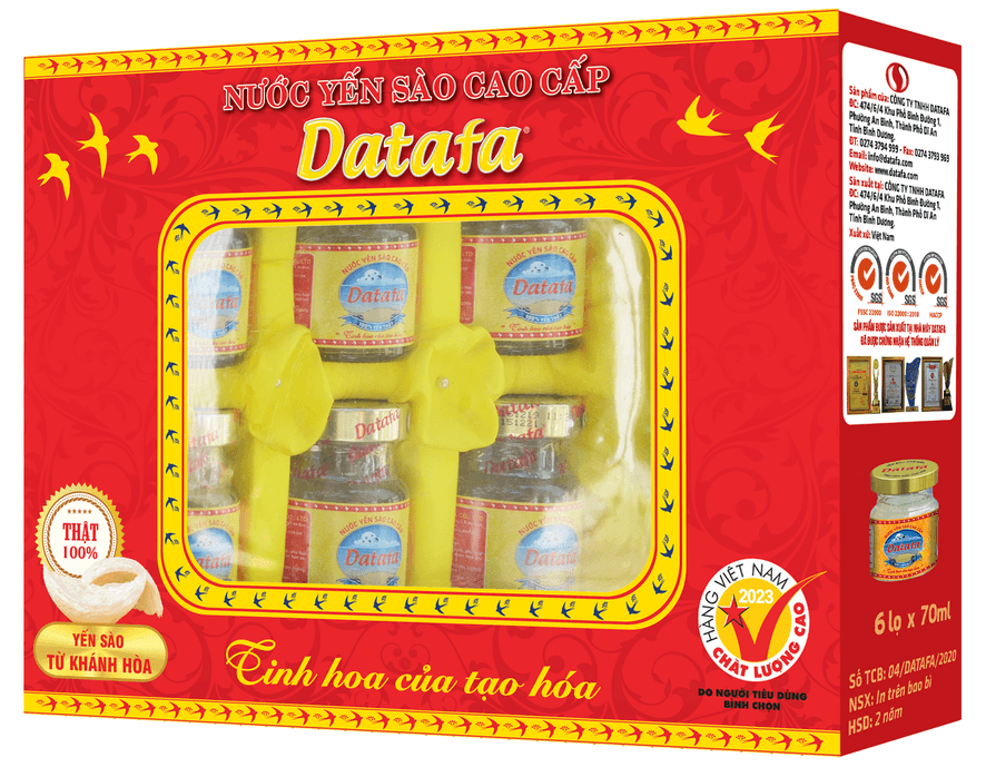 Nước Yến Sào Cao Cấp Datafa 70ml (Hộp 6 Lọ) - Yến Thật 100%, Không Chất Bảo Quản - Hàng Việt Nam Chất Lượng Cao