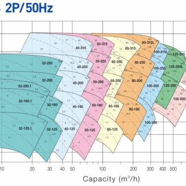 - Hiệu suất: Lưu lượng tối đa lên đến 1300 m³/h, cột áp tối đa 95 m.