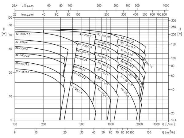 Bảng thông số kỹ thuật chính máy bơm Ebara 3D series: