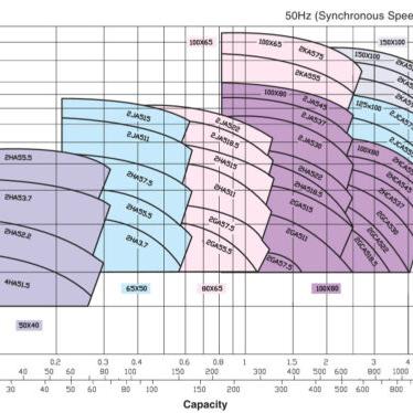 - Hiệu suất: Lưu lượng tối đa lên đến 1300 m³/h, cột áp tối đa 95 m.