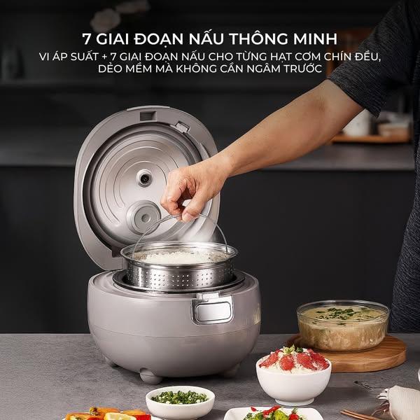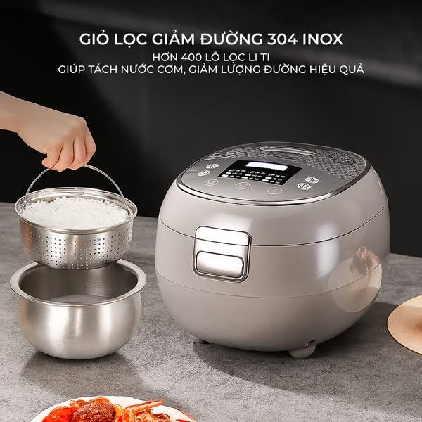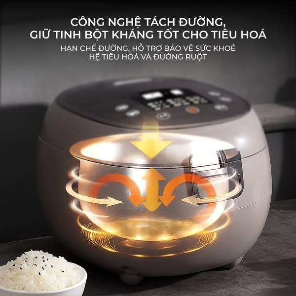 - Nấu cơm tách đường bằng áp suất vi mô thông minh: Cơm mềm, dẻo, ít đường