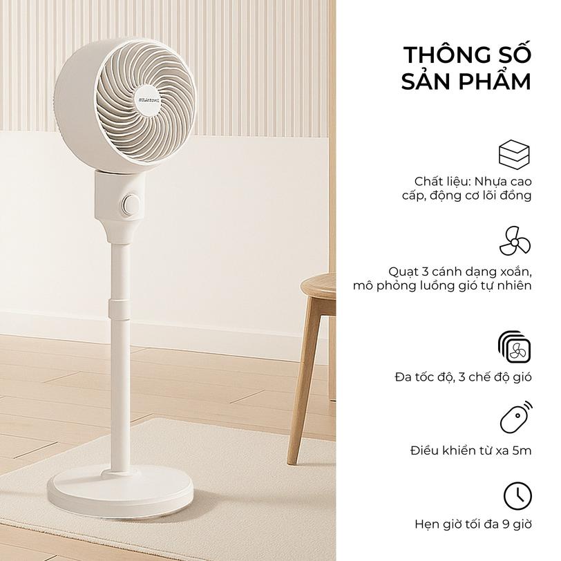 - Thiết kế quạt tuần hoàn khí: Tạo luồng gió xoáy đều khắp phòng, làm mới không gian