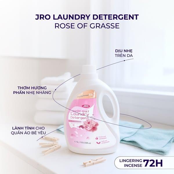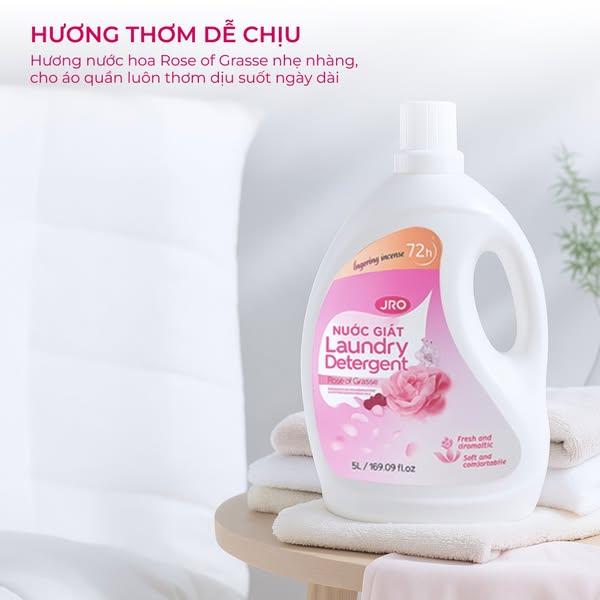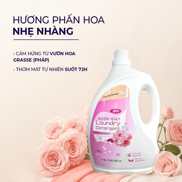 Nước giặt JRO hương nước hoa 72 giờ 5L mang hương hoa hồng tự nhiên nhẹ nhàng, tinh tế và dễ chịu. Ứng dụng công nghệ Nhật Bản hiện đại giúp làm sạch sâu, đánh bay mùi hôi và vết bẩn cứng đầu mà vẫn giữ cho sợi vải mềm mại, bền màu. Hương thơm lưu giữ lâu đến 72 giờ, giúp quần áo luôn thơm mát suốt ngày dài, phù hợp cho nhu cầu giặt giũ thường xuyên của gia đình.