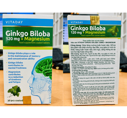 Thực phẩm bảo vệ sức khỏe: Viên nén Vitaday Ginkgo Biloba 120mg + Magnesium