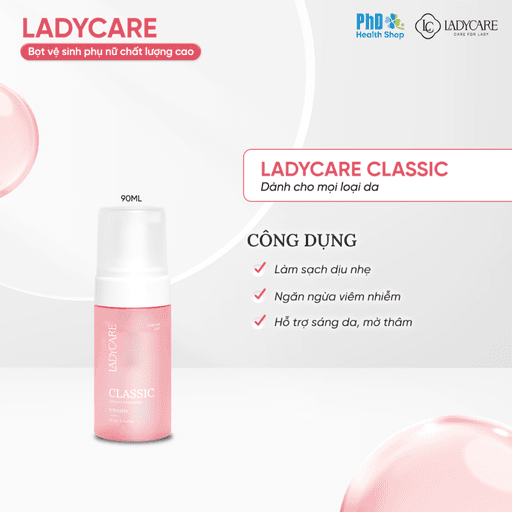 Dung dịch vệ sinh phụ nữ dạng bọt Ladycare Classic 90ml – Nhỏ gọn tiện lợi cho mọi loại da