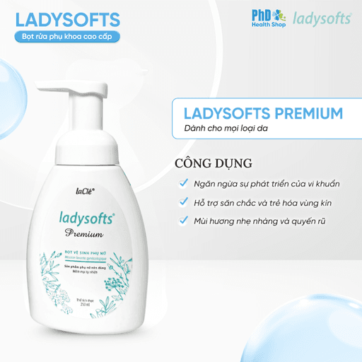 Dung dịch vệ sinh phụ nữ dạng bọt Ladysofts Premium 250ml – Làm sạch dịu nhẹ, cân bằng pH, khử mùi & dưỡng ẩm vùng kín