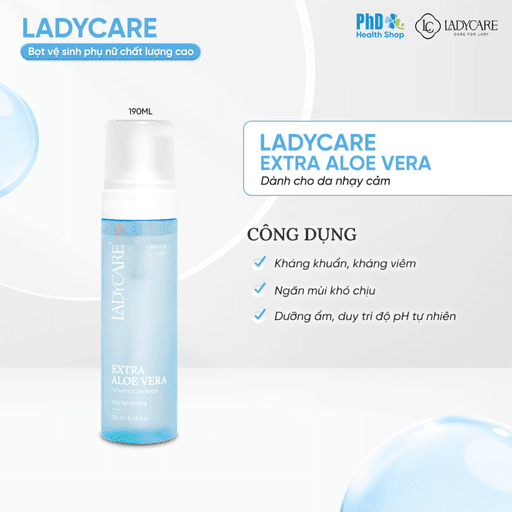 Dung dịch vệ sinh dạng bọt Ladycare Extra Aloe Vera 190ml – Bọt vệ sinh phụ nữ cho da nhạy cảm