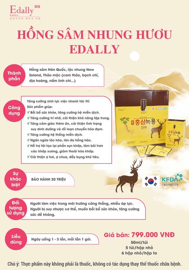 Nước hồng sâm nhung hươu Edally tăng cường sức khỏe, giảm mệt mỏi, bồi bổ cơ thể ( 50ml/túi x 5 túi/hộp nhỏ x 6 hộp nhỏ/hộp to)