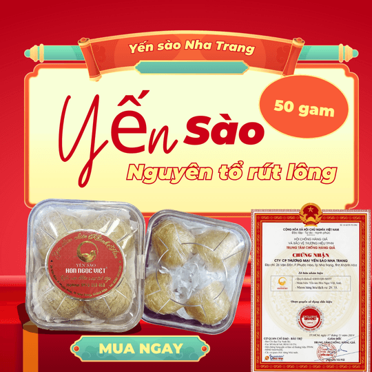 Yến sào nguyên tổ rút lông Hộp 50g Hòn Ngọc Việt là lựa chọn lý tưởng cho bồi bổ sức khỏe cao cấp và quà biếu sang trọng.