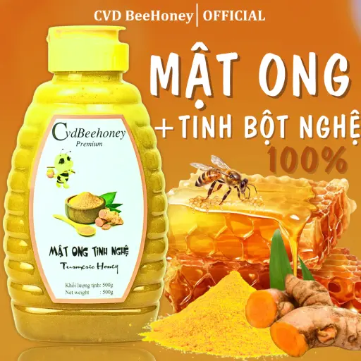 Mật Ong Nguyên Chất Tinh Bột Nghệ CvdBeehoney Chai PET 500ml – Mật Ong Tự Nhiên - Hỗ Trợ Dạ Dày, Đại Tràng, Làm Đẹp Da