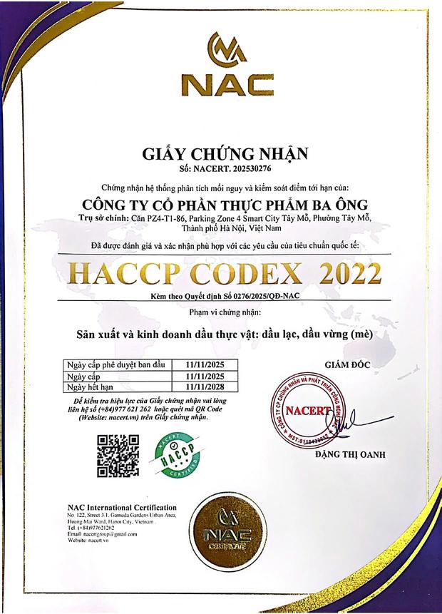 Giấy chứng nhận là minh chứng rõ ràng cho cam kết “Uy tín – Chất lượng – An toàn” mà Dầu sạch Ba Ông luôn gìn giữ.