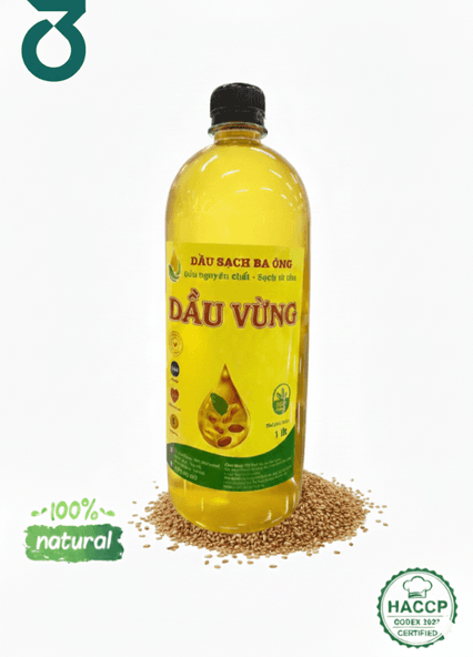 Dầu Vừng (Dầu Mè) Ba Ông được ép thủ công 100% từ hạt vừng sạch, chọn lọc kỹ lưỡng, mang đến hương vị thơm bùi tự nhiên cùng giá trị dinh dưỡng dồi dào – món quà sức khỏe tuyệt vời cho mọi gia đình.