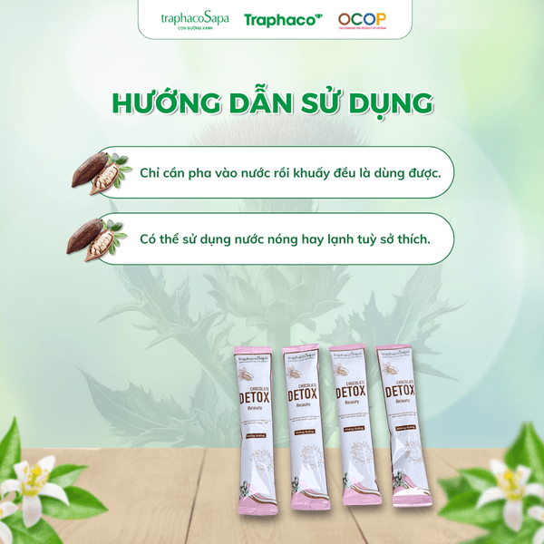 Bột Cacao - Atiso/Actiso TRAPHACOSAPA Chocolate Detox OCOP 4 Sao Thanh Lọc Cơ Thể Giảm Căng Thẳng Hộp 12 Gói