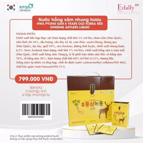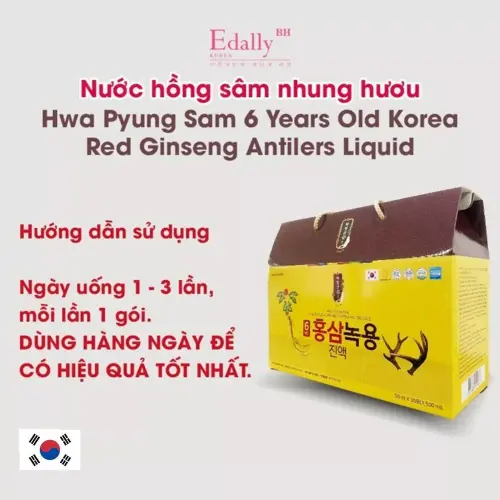 Nước hồng sâm nhung hươu Edally tăng cường sức khỏe, giảm mệt mỏi, bồi bổ cơ thể ( 50ml/túi x 5 túi/hộp nhỏ x 6 hộp nhỏ/hộp to)