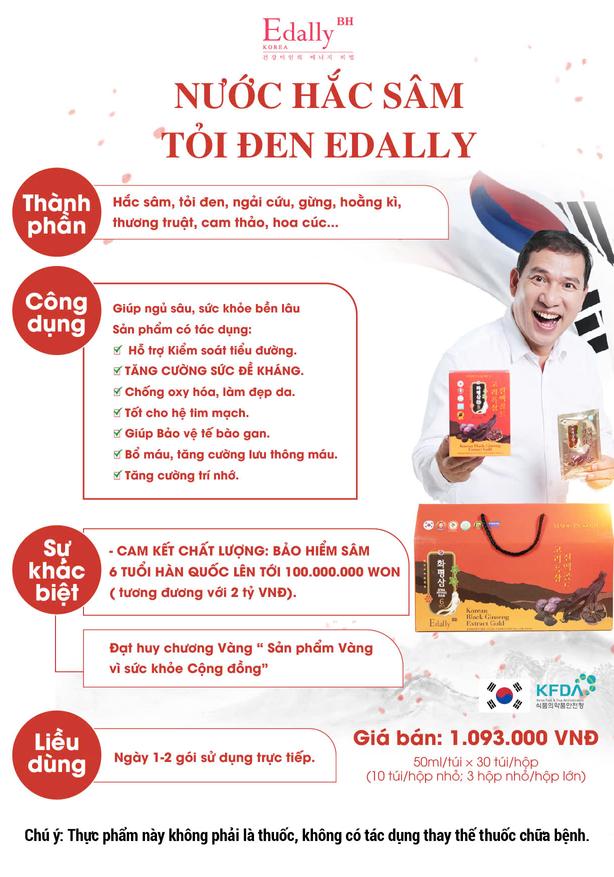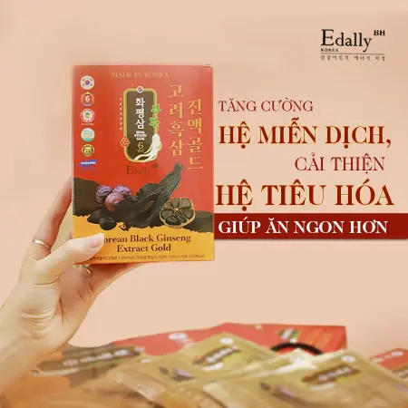 Edally nổi bật với sự kết hợp độc đáo giữa hắc sâm Hàn Quốc 6 năm tuổi và tỏi đen, tạo nên công thức vượt trội trong việc ổn định đường huyết và hỗ trợ tim mạch – khác biệt so với các sản phẩm nhân sâm thông thường chỉ tập trung vào bồi bổ. Sản phẩm được nhập khẩu chính ngạch từ Hàn Quốc, đảm bảo chất lượng nguyên chất, không pha tạp, và đã được chứng nhận an toàn thực phẩm. Quy cách đóng gói (50ml/túi x 10 túi/hộp nhỏ; 3 hộp nhỏ/hộp lớn) giúp dễ dàng mang theo và sử dụng, phù hợp cho lối sống hiện đại.