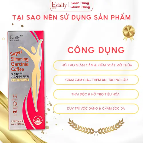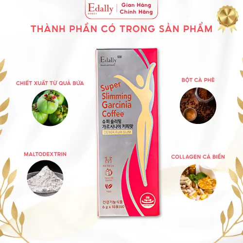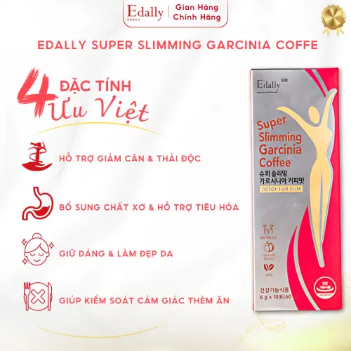 Cà phê giảm cân Edally Garcinia Coffee là giải pháp hỗ trợ kiểm soát cân nặng đột phá từ Hàn Quốc. Sản phẩm kết hợp giữa hương vị cà phê Arabica thượng hạng và các hoạt chất tự nhiên quý giá, giúp người dùng vừa duy trì sự tỉnh táo để làm việc, vừa đạt được mục tiêu giảm mỡ, thải độc và lấy lại vóc dáng thon gọn một cách an toàn, khoa học.
