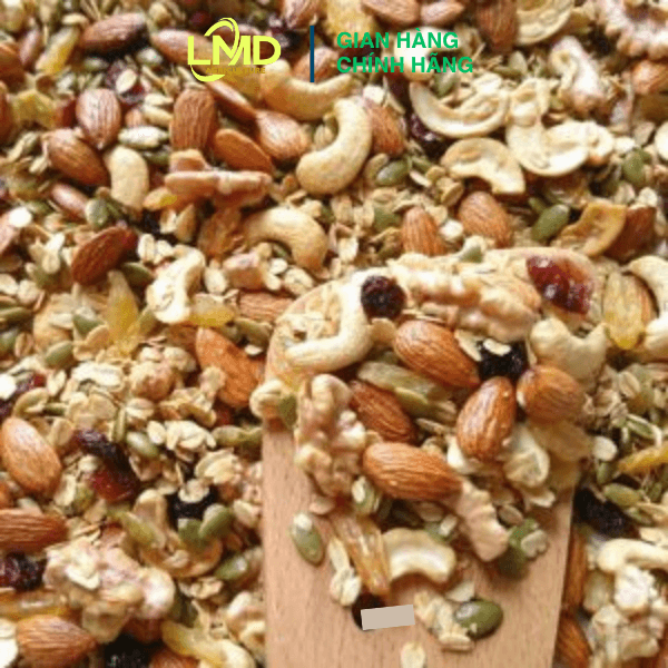 Sản phẩm Granola 55 Vị Nguyên Bản của thương hiệu Nông Sản Tây Nguyên LMD là giải pháp dinh dưỡng tối ưu dành cho những người đang theo đuổi chế độ ăn uống lành mạnh, Eat Clean hoặc cần bổ sung năng lượng nhanh chóng. Với sự kết hợp tinh tế giữa các loại hạt cao cấp và yến mạch truyền thống, sản phẩm mang lại hương vị mộc mạc, tự nhiên và giá trị dinh dưỡng vượt trội.