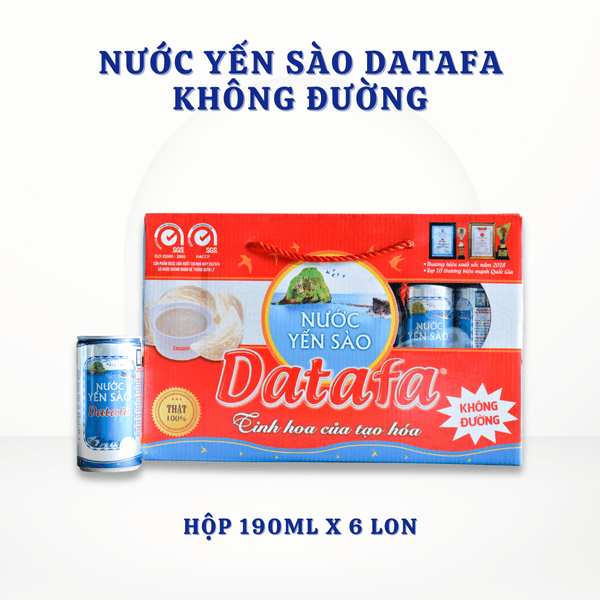 Nước Yến Sào DATAFA Không Đường 190ml - Dinh Dưỡng Vàng Cho Người Tiểu Đường, Ăn Kiêng (Lốc 6 Lon, Khay 30 Lon)