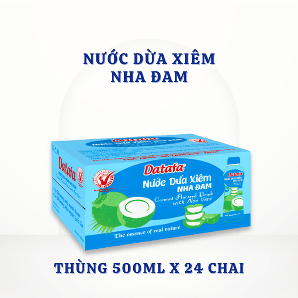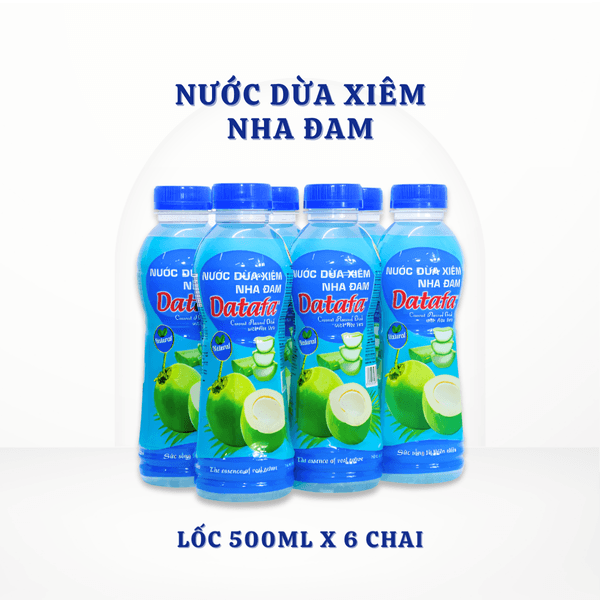 Nước Dừa Xiêm Nha Đam DATAFA 500ml - Thanh Nhiệt Kép, Da Sáng Mịn (Lốc 6 Chai, Thùng 24 Chai)